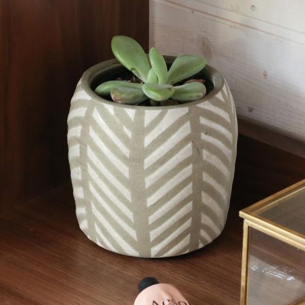 ■サイズ(cm):約φ 10.5 × H 11.5 ※多少サイズは前後します。 ■重量:約 600 g ■素材:陶器 ■備考:底穴なし ■ご注意: ※こちらの商品は鉢カバーであり、底穴はございません。直接土を入れての利用はしないで下さい。 ※ポリポットに入った植物をそのまま入れて鉢カバーとしてお使いになるか、サボテン・多肉植物などを植え込んでお使いいただくことを想定して作られています。 ※水漏れを起こさないように鉢の内側に防水材が塗布してありますが、完全な防水をお約束するものではありませんので設置場所に気を付けてお使いください。 【雑貨同士のみ同梱可】