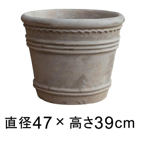 植木鉢 アンティーク おしゃれ 素焼き ショコラ モカ 直径47cm 高さ39cm 口径41cm 底直径33cm 内高さ38cm 内底直径27cm 容量 : 約 35リットル 重さ : 約 17kg 色 : グレーとブラウンの中間色・ショコラ・モカ アンティークの風合いを出す為、砂が吹きかけてあり その砂が取れることがありますが、これが通常の状態です 風合いに個体差がありますのでご理解下さい 底穴 : 有(底面と側面最下部)