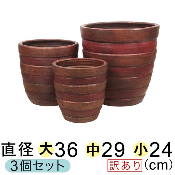 訳あり 植木鉢 おしゃれ 横じま丸深型 ツートン茶色系 テラコッタ 鉢 大中小3個セット 大型 色濃い目の場合もあります